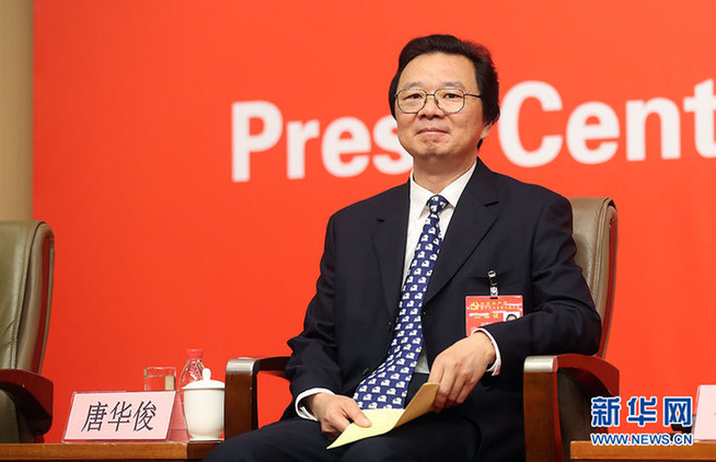 ??? 10月21日,十九大新聞中心舉辦集體采訪活動(dòng),主題為“農(nóng)業(yè)科技創(chuàng)新”。圖為農(nóng)業(yè)部黨組成員、中國農(nóng)業(yè)科學(xué)院院長,中國工程院院士唐華俊。新華網(wǎng) 郝廣鵬攝
