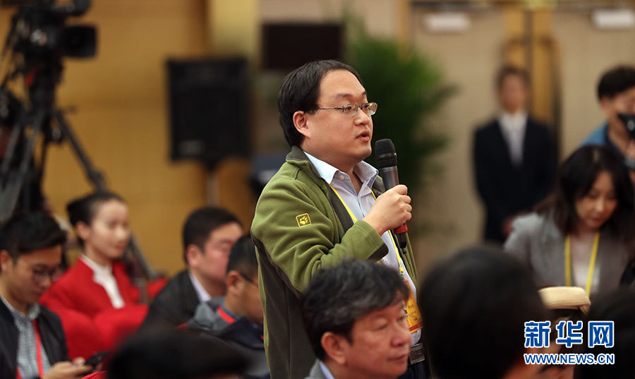 10月21日,十九大新聞中心舉辦集體采訪活動,主題為“農業(yè)科技創(chuàng)新”。圖為經濟日報記者提問。新華網 郝廣鵬攝