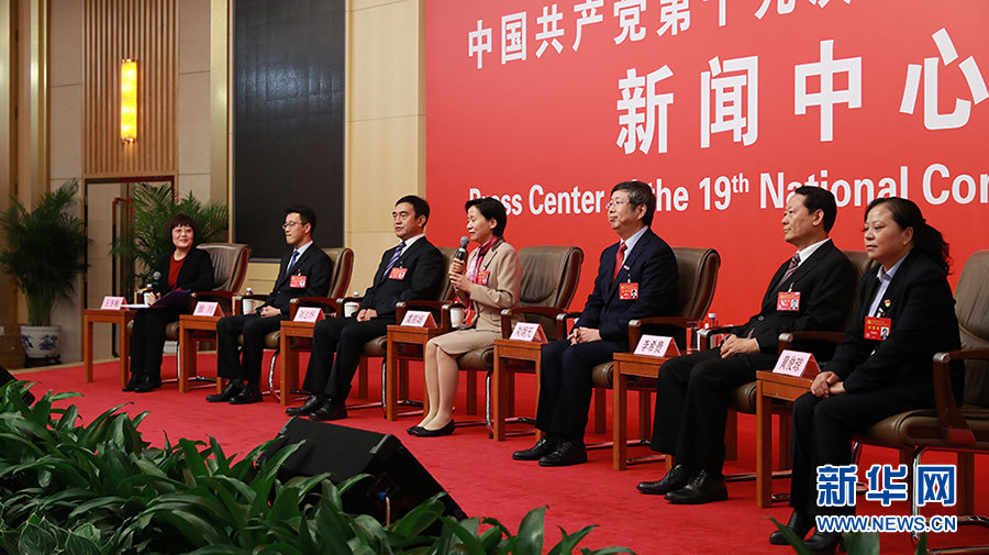 10月22日,十九大新聞中心在梅地亞中心二層新聞發(fā)布廳舉辦集體采訪活動(dòng),邀請(qǐng)教育領(lǐng)域代表談“教育綜合改革”。圖為集體采訪活動(dòng)現(xiàn)場(chǎng)。新華網(wǎng) 郝廣鵬攝