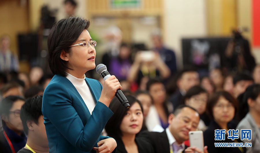 10月23日,十九大新聞中心舉辦記者招待會(huì),邀請(qǐng)中央財(cái)經(jīng)領(lǐng)導(dǎo)小組辦公室副主任楊偉民,環(huán)境保護(hù)部黨組書記、部長(zhǎng)李干杰介紹踐行綠色發(fā)展理念,建設(shè)美麗中國(guó)有關(guān)情況,并回答記者提問。圖為中央電視臺(tái)記者提問。新華網(wǎng) 郝廣鵬攝