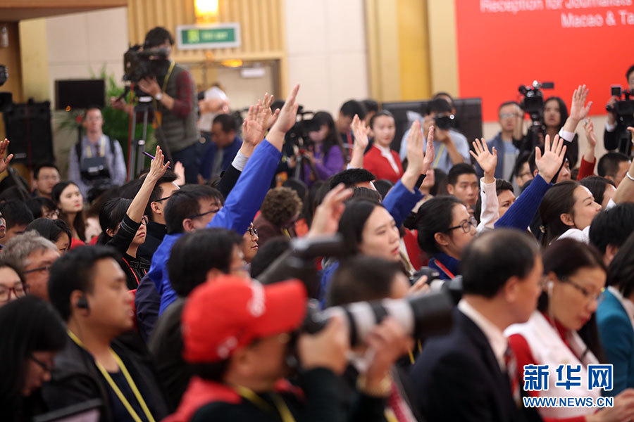 10月23日,十九大新聞中心舉辦記者招待會(huì),邀請(qǐng)中央財(cái)經(jīng)領(lǐng)導(dǎo)小組辦公室副主任楊偉民,環(huán)境保護(hù)部黨組書記、部長李干杰介紹踐行綠色發(fā)展理念,建設(shè)美麗中國有關(guān)情況,并回答記者提問。圖為現(xiàn)場記者。新華網(wǎng) 郝廣鵬攝