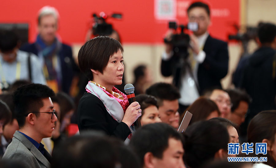 10月23日,十九大新聞中心舉辦記者招待會,邀請中央財經(jīng)領(lǐng)導(dǎo)小組辦公室副主任楊偉民,環(huán)境保護(hù)部黨組書記、部長李干杰介紹踐行綠色發(fā)展理念,建設(shè)美麗中國有關(guān)情況,并回答記者提問。圖為中國青年報記者提問。新華網(wǎng) 郝廣鵬攝