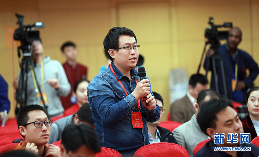 10月23日,十九大新聞中心舉辦集體采訪活動,主題為“打好生態(tài)環(huán)保攻堅戰(zhàn)”。圖為光明日報記者提問。新華網(wǎng) 郝廣鵬攝