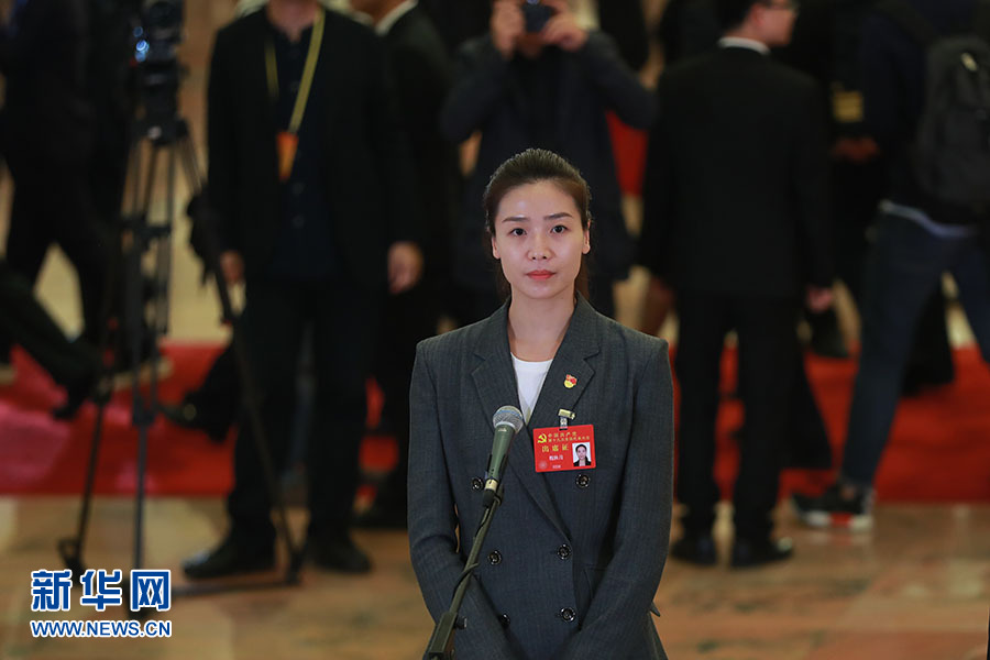 10月24日,人民大會(huì)堂舉辦“黨代表通道”第三場采訪活動(dòng)。圖為魏秋月代表接受采訪。新華網(wǎng)記者 翟子赫 攝