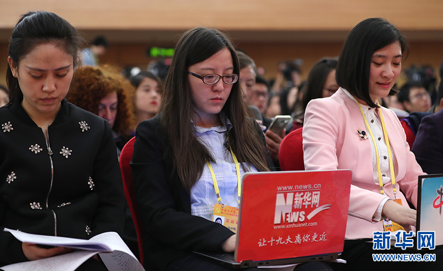 10月26日上午10:00,中國(guó)共產(chǎn)黨第十九次全國(guó)代表大會(huì)新聞發(fā)言人在梅地亞賓館二層新聞發(fā)布廳召開專題新聞發(fā)布會(huì),請(qǐng)有關(guān)方面負(fù)責(zé)人解讀十九大報(bào)告,并回答記者關(guān)心的問(wèn)題。圖為現(xiàn)場(chǎng)媒體記者。新華網(wǎng)?翟子赫 攝