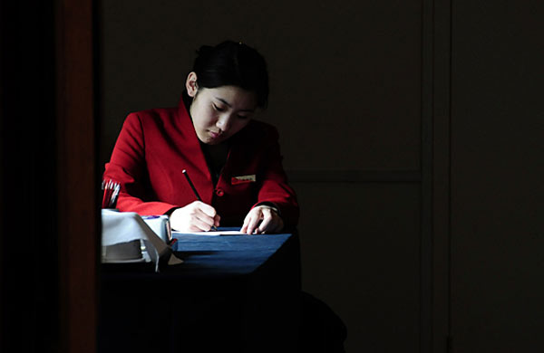 3月1日,人民大會堂工作人員正在進(jìn)行緊張的會前準(zhǔn)備工作。第十一屆全國人民代表大會第四次會議、全國政協(xié)十一屆四次會議即將開幕。