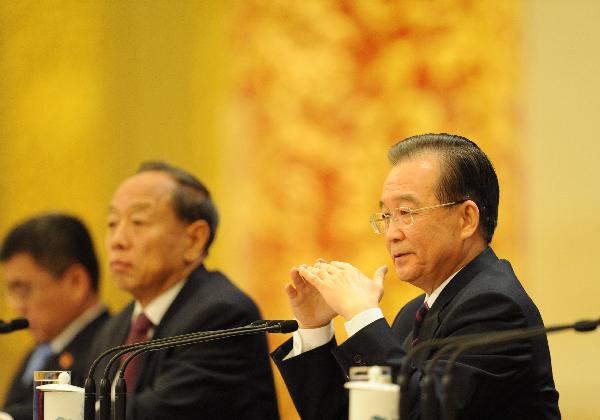 溫家寶與中外記者見面并答問。