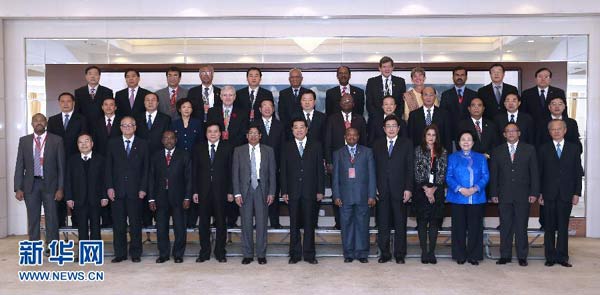 紀(jì)念大會開始前,賈慶林會見了出席大會的各國部長、駐華使節(jié)和國際組織負(fù)責(zé)人。