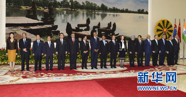 ??? 11月20日,第七屆東亞峰會(huì)在柬埔寨金邊舉行。中國國務(wù)院總理溫家寶與東亞峰會(huì)其他成員國領(lǐng)導(dǎo)人共同出席。這是與會(huì)領(lǐng)導(dǎo)人在會(huì)前合影。新華社記者 張鐸 攝