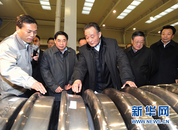 11月19日至23日,吳邦國先后來到運(yùn)城、太原、晉中等地,就貫徹落實(shí)黨的十八大精神進(jìn)行調(diào)研。在太原重工集團(tuán)高速輪對國產(chǎn)化項(xiàng)目現(xiàn)場,他詳細(xì)了解工藝流程和技術(shù)指標(biāo),強(qiáng)調(diào)要發(fā)揮企業(yè)作為科技創(chuàng)新主體的作用,瞄準(zhǔn)世界同行業(yè)先進(jìn)水平,加大自主創(chuàng)新力度。在太原鋼鐵集團(tuán)4350立方米高爐前,他關(guān)切詢問水、熱、煤氣、爐渣回收利用情況,稱贊公司發(fā)展循環(huán)經(jīng)濟(jì)不僅有利于保護(hù)生態(tài)環(huán)境,也取得了良好經(jīng)濟(jì)效益。在漾泉藍(lán)焰煤層氣開發(fā)公司,他同工程技術(shù)人員探討煤層氣開發(fā)的關(guān)鍵技術(shù)和應(yīng)用前景,勉勵(lì)大家為發(fā)展清潔能源、提高能源利用效率作貢獻(xiàn)。在華通現(xiàn)代科技農(nóng)業(yè)示范園、粟海集團(tuán),他希望企業(yè)發(fā)揮龍頭和輻射作用,抓好農(nóng)戶基地建設(shè),帶動(dòng)農(nóng)民增收致富。在山西省博物院,他指出,山西歷史悠久、文化底蘊(yùn)深厚,發(fā)展旅游業(yè)條件得天獨(dú)厚,要深挖發(fā)展?jié)摿Γ蛟炀仿糜尉€路,帶動(dòng)相關(guān)服務(wù)業(yè)發(fā)展,將旅游資源優(yōu)勢轉(zhuǎn)化為經(jīng)濟(jì)優(yōu)勢,造福更多百姓。在太原市錦繡苑社區(qū),他同基層干部群眾親切交談,了解他們所想所盼,并祝愿大家日子越過越紅火。在昔陽縣大寨村,他登上虎頭山、來到展覽館、走進(jìn)村民家,實(shí)地察看大寨發(fā)生的嶄新變化,了解大寨歷史和發(fā)展規(guī)劃,希望大寨人民繼承大寨優(yōu)良傳統(tǒng),發(fā)揚(yáng)自力更生、艱苦奮斗精神,因地制宜發(fā)展現(xiàn)代農(nóng)業(yè),在社會(huì)主義新農(nóng)村建設(shè)中譜寫輝煌。