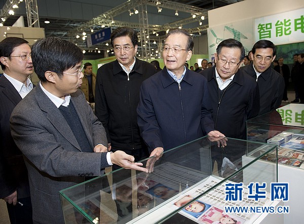 ??? 12月13日,國務院總理溫家寶到北京中關村考察并與部分企業(yè)負責人座談。這是溫家寶在中關村自主創(chuàng)新示范區(qū)展示中心考察。 新華社記者黃敬文 攝