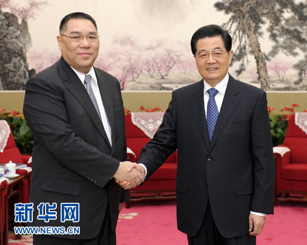 新華網(wǎng)北京12月21日電(記者李寒芳)國(guó)家主席胡錦濤21日下午在中南海會(huì)見了來京述職的澳門特別行政區(qū)行政長(zhǎng)官崔世安,聽取了他對(duì)澳門當(dāng)前形勢(shì)和特區(qū)政府工作情況的匯報(bào)。