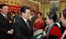 全國兩會少數(shù)民族代表委員茶話會舉行 胡錦濤等出席