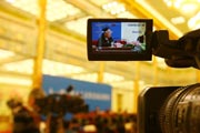 新華網(wǎng)、中國政府網(wǎng)直播工作人員在現(xiàn)場準(zhǔn)備就緒