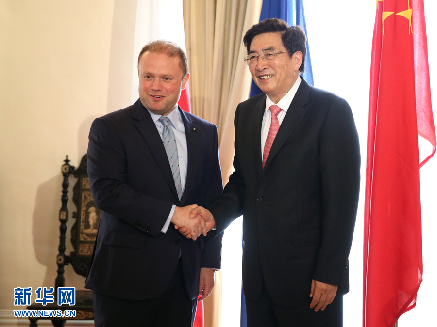 ??? 6月16日,在馬耳他首都瓦萊塔的總理府,郭金龍會(huì)見馬耳他總理穆斯卡特(左)。應(yīng)邀對(duì)馬耳他進(jìn)行友好訪問的中共中央政治局委員、北京市委書記郭金龍16日在瓦萊塔分別會(huì)見馬耳他總統(tǒng)普雷卡和總理、工黨領(lǐng)袖穆斯卡特?! ⌒氯A社記者李佳攝