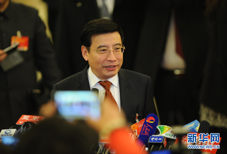 ???? 3月5日,第十二屆全國(guó)人民代表大會(huì)第三次會(huì)議在北京人民大會(huì)堂開幕。這是工業(yè)和信息化部部長(zhǎng)苗圩接受記者采訪。新華網(wǎng)/中國(guó)政府網(wǎng) 翟子赫 攝
