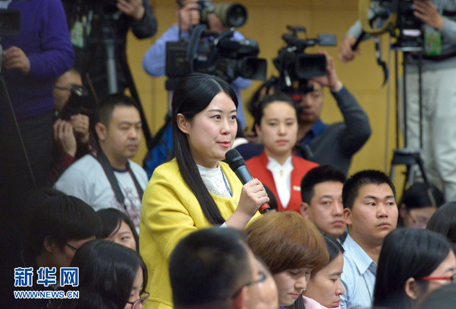 ????十二屆全國(guó)人大三次會(huì)議新聞中心于3月12日在梅地亞中心多功能廳舉行記者會(huì),邀請(qǐng)中國(guó)人民銀行行長(zhǎng)周小川,中國(guó)人民銀行副行長(zhǎng)、國(guó)家外匯管理局局長(zhǎng)易綱,中國(guó)人民銀行副行長(zhǎng)潘功勝,絲路基金有限責(zé)任公司董事長(zhǎng)金琦就金融改革與發(fā)展回答中外記者提問。圖為香港衛(wèi)視記者提問。新華網(wǎng)/中國(guó)政府網(wǎng) 郭小天攝