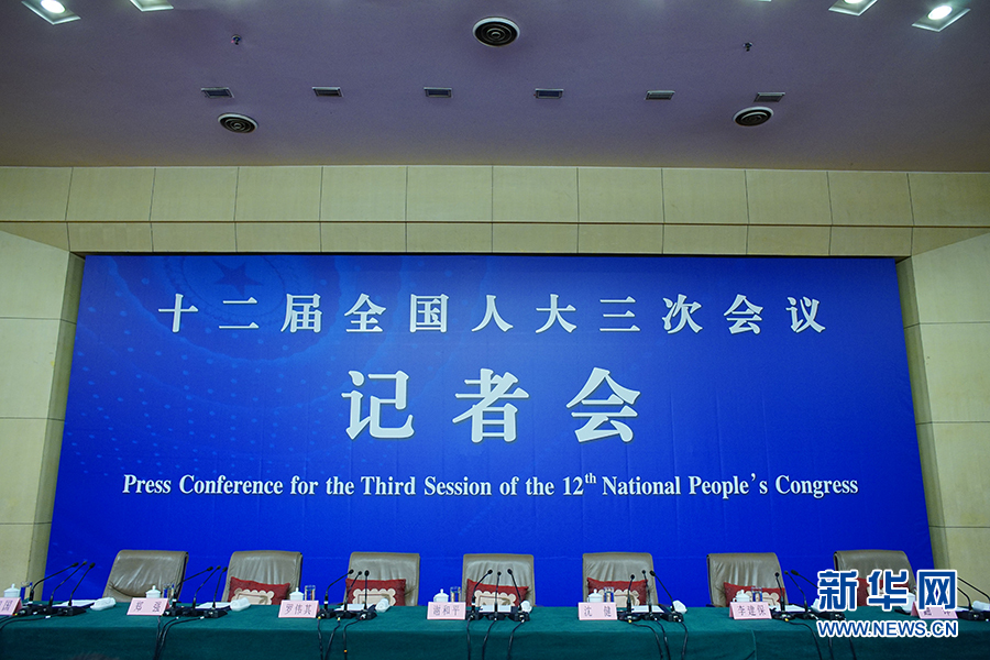 ????3月13日上午10時(shí),十二屆全國(guó)人大三次會(huì)議新聞中心邀請(qǐng)四川大學(xué)校長(zhǎng)謝和平、江蘇省教育廳廳長(zhǎng)沈健、廣東省教育廳廳長(zhǎng)羅偉其、海南大學(xué)校長(zhǎng)李建保、貴州大學(xué)校長(zhǎng)鄭強(qiáng)就完善高等教育治理結(jié)構(gòu)的相關(guān)問(wèn)題回答中外記者提問(wèn)。圖為記者會(huì)現(xiàn)場(chǎng)。新華網(wǎng)/中國(guó)政府網(wǎng) 郭小天 攝