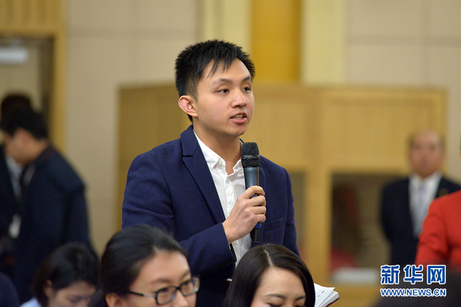 ????3月13日上午10時,十二屆全國人大三次會議新聞中心邀請四川大學(xué)校長謝和平、江蘇省教育廳廳長沈健、廣東省教育廳廳長羅偉其、海南大學(xué)校長李建保、貴州大學(xué)校長鄭強就完善高等教育治理結(jié)構(gòu)的相關(guān)問題回答中外記者提問。圖為貴州廣播電視臺記者提問。新華網(wǎng)/中國政府網(wǎng) 郭小天 攝