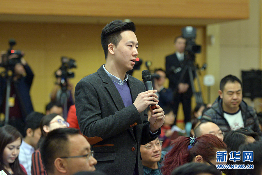 ????3月13日上午10時,十二屆全國人大三次會議新聞中心邀請四川大學(xué)校長謝和平、江蘇省教育廳廳長沈健、廣東省教育廳廳長羅偉其、海南大學(xué)校長李建保、貴州大學(xué)校長鄭強(qiáng)就完善高等教育治理結(jié)構(gòu)的相關(guān)問題回答中外記者提問。圖為中國日報社記者提問。新華網(wǎng)/中國政府網(wǎng) 郭小天 攝