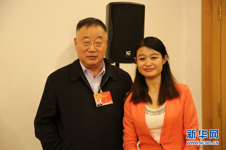 ????2015年3月15日,全國政協(xié)委員、中科院院士、氣象學會理事長秦大河做客新華網(wǎng)2015全國兩會特別訪談。圖為主持人與秦大河合影。
