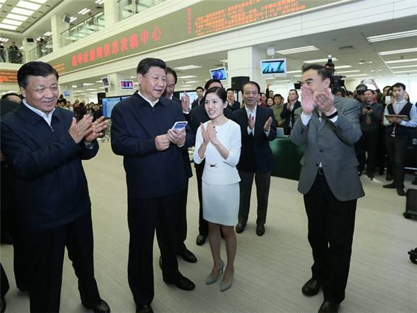 新華社北京2月20日新媒體專電 19日上午,中共中央總書記、國(guó)家主席、中央軍委主席習(xí)近平來(lái)到新華社調(diào)研。在新聞發(fā)稿中心,一位編輯介紹說(shuō),在新華社客戶端上,很多網(wǎng)民給記者點(diǎn)贊。總書記按動(dòng)“為全國(guó)新聞工作者點(diǎn)贊”頁(yè)面上的點(diǎn)贊按鈕,屏幕上立即閃現(xiàn)“點(diǎn)贊+1”。采編人員對(duì)總書記說(shuō),您的鼓勵(lì)就是我們的動(dòng)力。