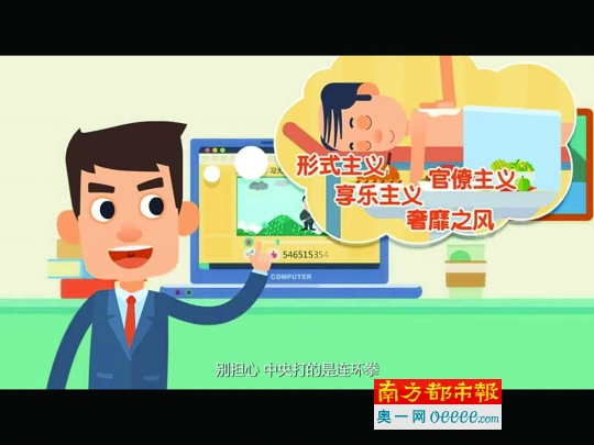 朝陽工作室此次推出的即是“三嚴(yán)三實(shí)”的解釋性視頻,一共分為3部短片,每部短片只有2分多鐘,語言詼諧、風(fēng)趣?!皣?biāo)缹殞毩恕钡葧r(shí)髦的網(wǎng)絡(luò)用語不時(shí)出現(xiàn)在視頻中,讓網(wǎng)友們覺得很“萌”。