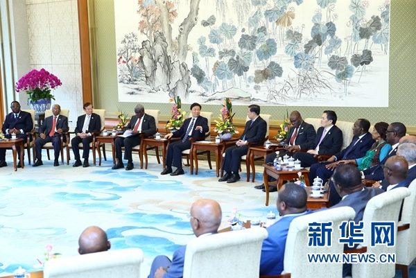 7月28日,國家副主席李源潮在北京集體會(huì)見出席中非合作論壇約翰內(nèi)斯堡峰會(huì)成果落實(shí)協(xié)調(diào)人會(huì)議的非方代表團(tuán)團(tuán)長。 新華社記者 丁海濤 攝