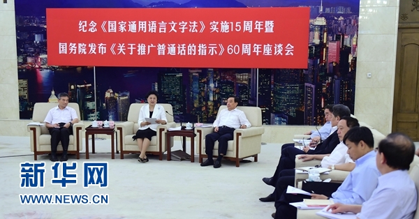 劉延?xùn)|在紀(jì)念《國家通用語言文字法》實施15周年暨國務(wù)院發(fā)布《關(guān)于推廣普通話的指示》60周年座談會上強調(diào)