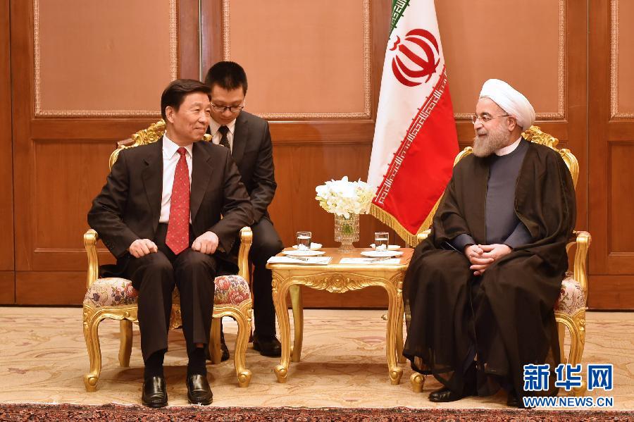 ??? 10月9日,伊朗總統(tǒng)魯哈尼(右)在泰國曼谷會(huì)見前來出席亞洲合作對(duì)話第二次領(lǐng)導(dǎo)人會(huì)議的中國國家副主席李源潮。 新華社記者李芒茫攝