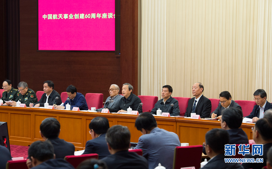 ????10月12日,中國航天事業(yè)創(chuàng)建60周年座談會在北京召開。中共中央政治局委員、國務院副總理馬凱出席座談會并講話,國務委員王勇出席座談會。新華社記者謝環(huán)馳攝