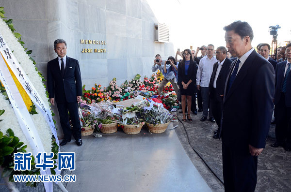 當(dāng)天上午,李源潮前往何塞·馬蒂紀(jì)念館,代習(xí)近平主席向菲德爾·卡斯特羅敬獻花圈,并向在場的菲德爾·卡斯特羅的家屬轉(zhuǎn)達習(xí)近平主席的深切慰問。