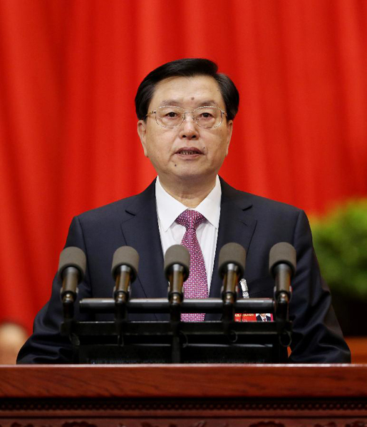 3月9日,十二屆全國(guó)人大常委會(huì)委員長(zhǎng)張德江受十二屆全國(guó)人大常委會(huì)委托,向十二屆全國(guó)人大四次會(huì)議作《全國(guó)人民代表大會(huì)常務(wù)委員會(huì)工作報(bào)告》。新華社記者 姚大偉 攝