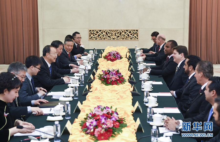 3月22日,中共中央書記處書記、全國政協(xié)副主席杜青林在北京會見巴西民主運(yùn)動黨眾議院黨團(tuán)領(lǐng)袖羅西率領(lǐng)的該黨干部考察團(tuán)。 新華社記者張領(lǐng)攝