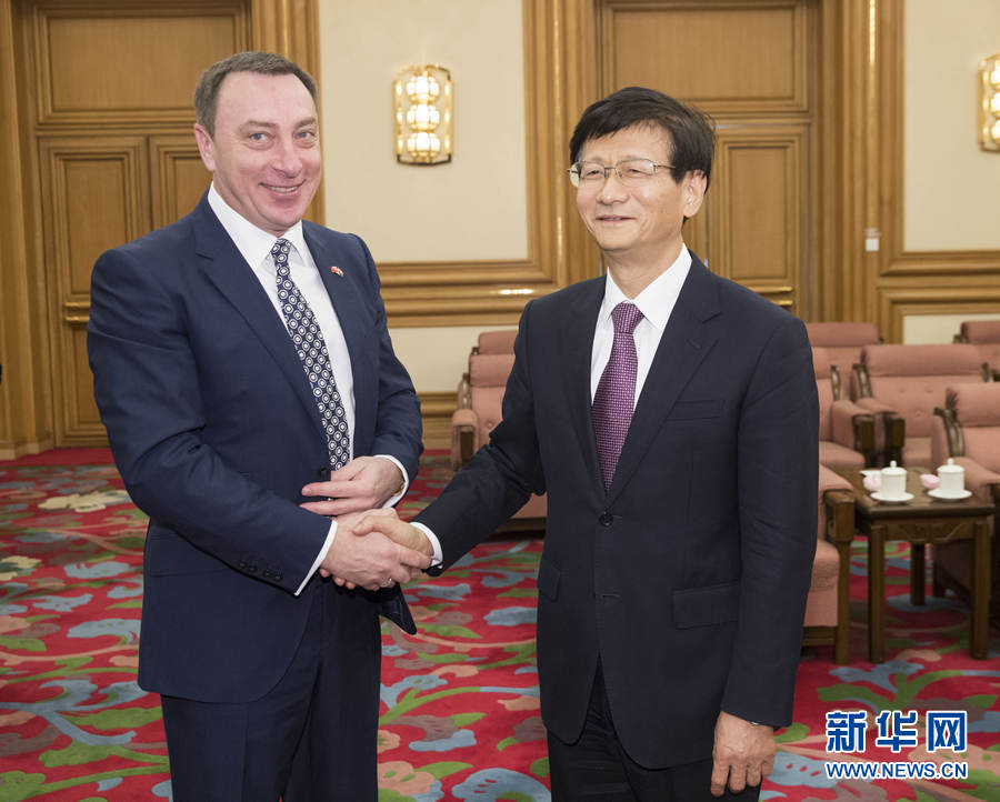 5月13日,中共中央政治局委員、中央政法委書(shū)記、中白政府間合作委員會(huì)中方主席孟建柱在北京中南海會(huì)見(jiàn)白俄羅斯總統(tǒng)辦公廳副主任、中白政府間合作委員會(huì)白方主席斯諾普科夫。新華社記者 丁林 攝