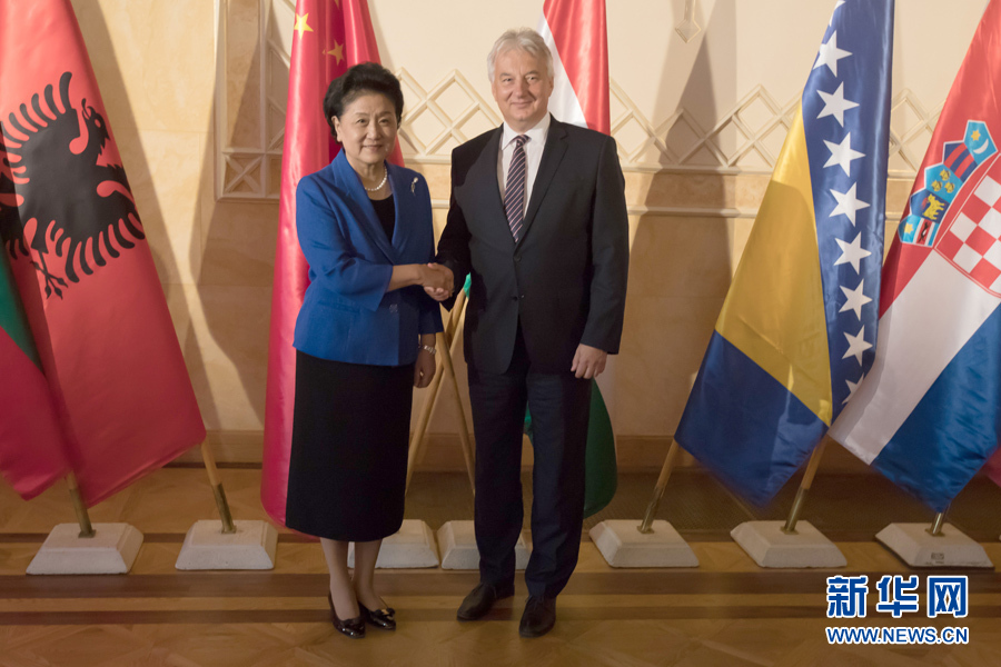 6月19日,在匈牙利布達(dá)佩斯,中國國務(wù)院副總理劉延?xùn)|(左)會見匈牙利副總理謝姆延。 新華社發(fā)(弗爾季·奧蒂洛攝)
