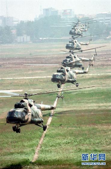 1999年6月7日,陸軍航空兵在進行飛行訓(xùn)練。新華社發(fā)