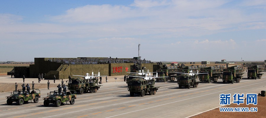 新華社內(nèi)蒙古朱日和7月30日電(記者王經(jīng)國(guó)、樊永強(qiáng))由40架三型無(wú)人機(jī)組成的無(wú)人機(jī)方隊(duì),以空軍和陸軍混編模式,30日在慶祝中國(guó)人民解放軍建軍90周年閱兵中首次亮相。