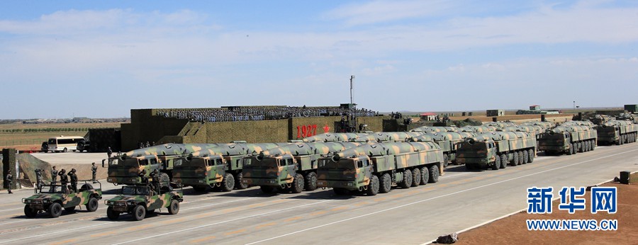 7月30日,慶祝中國人民解放軍建軍90周年閱兵在位于內(nèi)蒙古的朱日和訓(xùn)練基地舉行。中共中央總書記、國家主席、中央軍委主席習(xí)近平檢閱部隊(duì)并發(fā)表重要講話。這是核導(dǎo)彈方隊(duì)。新華社記者 查春明 攝