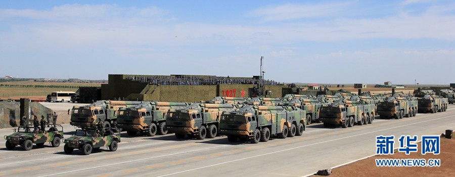 7月30日,慶祝中國人民解放軍建軍90周年閱兵在位于內(nèi)蒙古的朱日和訓(xùn)練基地舉行。中共中央總書記、國家主席、中央軍委主席習(xí)近平檢閱部隊(duì)并發(fā)表重要講話。這是常規(guī)導(dǎo)彈第2方隊(duì)。新華社記者 查春明 攝