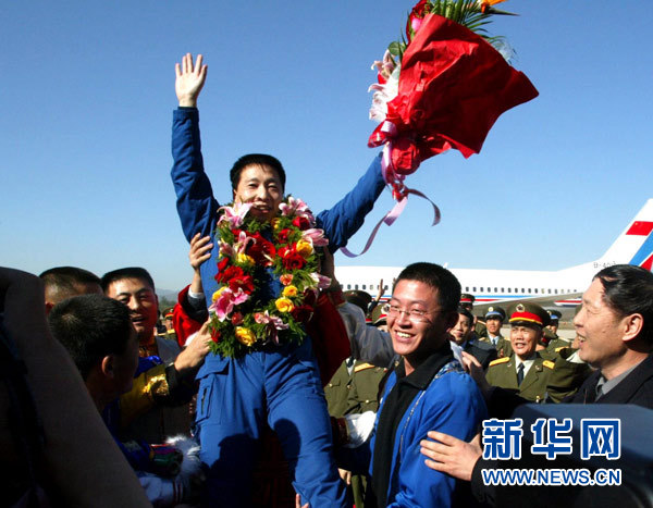 ?。玻埃埃衬杲鹎铮伙w沖天,中華民族千年飛天夢圓。他成為中國人心目中的英雄,國家授予他“航天英雄”榮譽(yù)稱號。