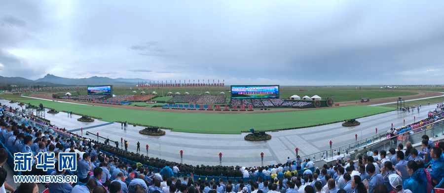 8月8日,內(nèi)蒙古自治區(qū)成立70周年慶祝大會(huì)在呼和塔拉內(nèi)蒙古少數(shù)民族群眾文化體育運(yùn)動(dòng)中心舉行。圖為大會(huì)現(xiàn)場(chǎng)。新華網(wǎng)記者 陳杰 攝