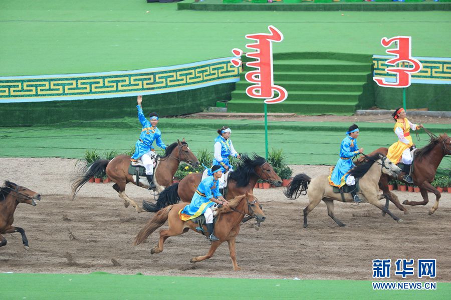 8月8日,內(nèi)蒙古自治區(qū)成立70周年慶祝大會在呼和塔拉內(nèi)蒙古少數(shù)民族群眾文化體育運(yùn)動中心舉行。圖為群眾行進(jìn)表演。新華網(wǎng)記者 陳杰 攝