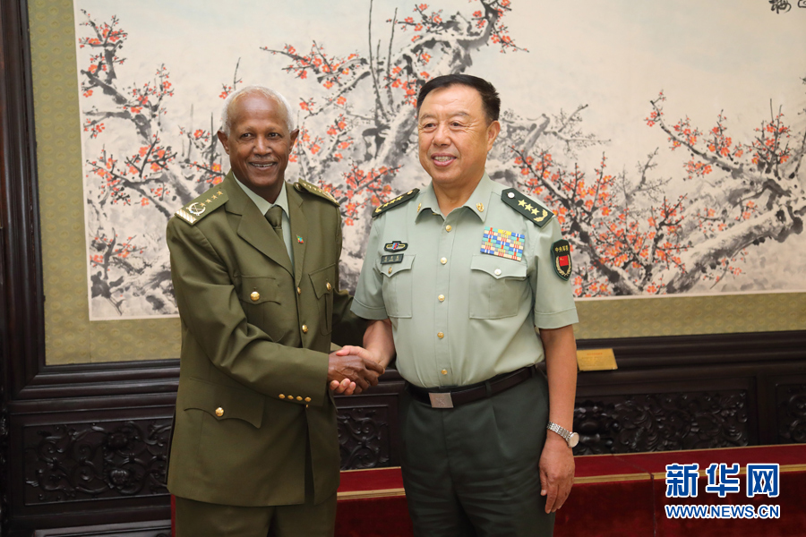 8月18日,中央軍委副主席范長(zhǎng)龍?jiān)诒本?huì)見來訪的埃塞俄比亞國(guó)防軍總參謀長(zhǎng)薩莫拉·尤內(nèi)斯。 新華社記者 劉芳 攝