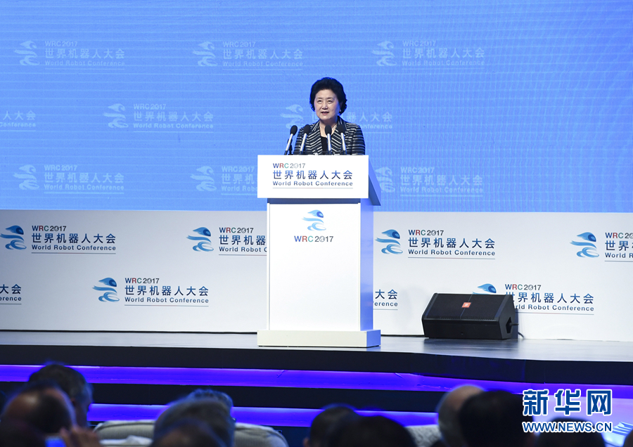 8月23日,2017世界機(jī)器人大會(huì)開幕式在北京舉行,中共中央政治局委員、國(guó)務(wù)院副總理劉延?xùn)|出席并講話。 新華社記者張領(lǐng)攝