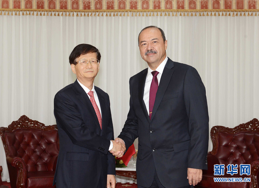 9月9日,中共中央政治局委員、中央政法委書記、中國和烏茲別克斯坦政府間合作委員會(huì)中方主席孟建柱(左)在塔什干會(huì)見烏總理、中烏政府間合作委員會(huì)烏方主席阿里波夫。 新華社記者沙達(dá)提攝