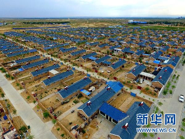 涇興村全貌照片(2017年6月21攝)。涇興村是位于寧夏回族自治區(qū)靈武市白土崗鄉(xiāng)的純移民新村,村民593戶2692人系2015年從寧夏涇源縣7個鄉(xiāng)鎮(zhèn)21個行政村搬遷而來。該村目前共有建檔立卡戶239戶1180人,扶貧脫貧任務(wù)艱巨。當?shù)卣鶕?jù)該村情況,通過土地流轉(zhuǎn),引進大型養(yǎng)殖企業(yè);密切與企業(yè)合作,在村中建立“扶貧車間”;依托實力雄厚企業(yè),促成企業(yè)與貧困戶結(jié)對幫扶等方式,逐步實現(xiàn)貧困戶脫貧致富。新華社發(fā)