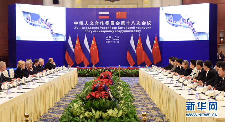 9月12日,中國(guó)國(guó)務(wù)院副總理、中俄人文合作委員會(huì)中方主席劉延?xùn)|在廣州與俄羅斯副總理、委員會(huì)俄方主席戈洛杰茨共同主持召開(kāi)中俄人文合作委員會(huì)第十八次會(huì)議。新華社記者 盧漢欣 攝