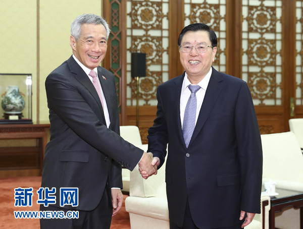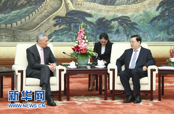 9月20日,中共中央政治局常委、全國人大常委會委員長張德江在北京會見新加坡總理李顯龍。 新華社記者 謝環(huán)馳 攝