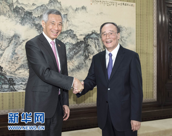 9月20日,中共中央政治局常委、中央紀委書記王岐山在北京會見新加坡總理李顯龍。 新華社記者 李濤 攝